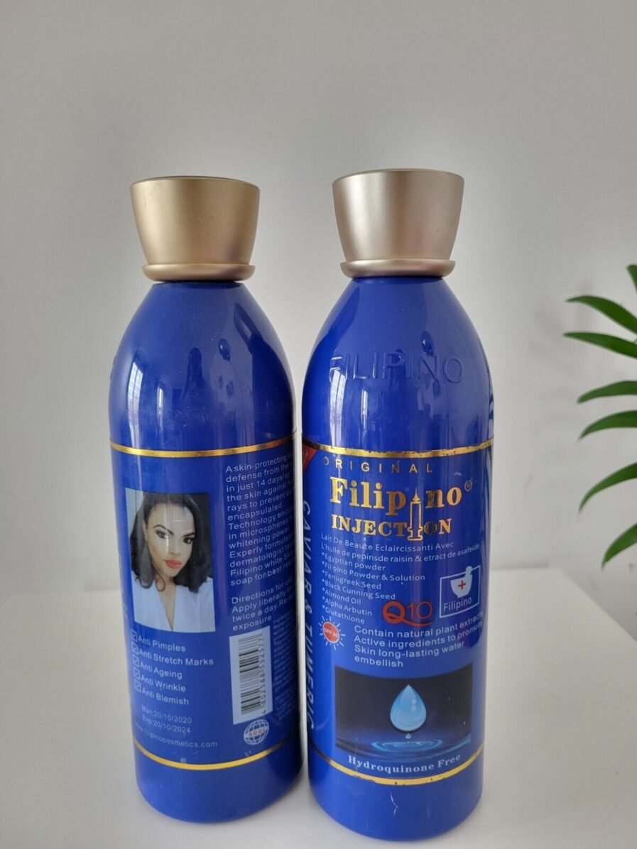 Filipino Injection Lotion est une formule unique et une lotion protectrice pour la peau qui offre une défense complète contre le soleil car elle blanchit visiblement en seulement 14 jours. Le SPF 30 intégré protège efficacement la peau contre les rayons UVA et UVB nocifs pour éviter l’assombrissement, tout en étant micro-encapsulé. La technologie enferme les ingrédients actifs dans une microsphère pour assurer un pouvoir blanchissant maximal. Hypoallergénique formulé par des experts et testé par des dermatologues.